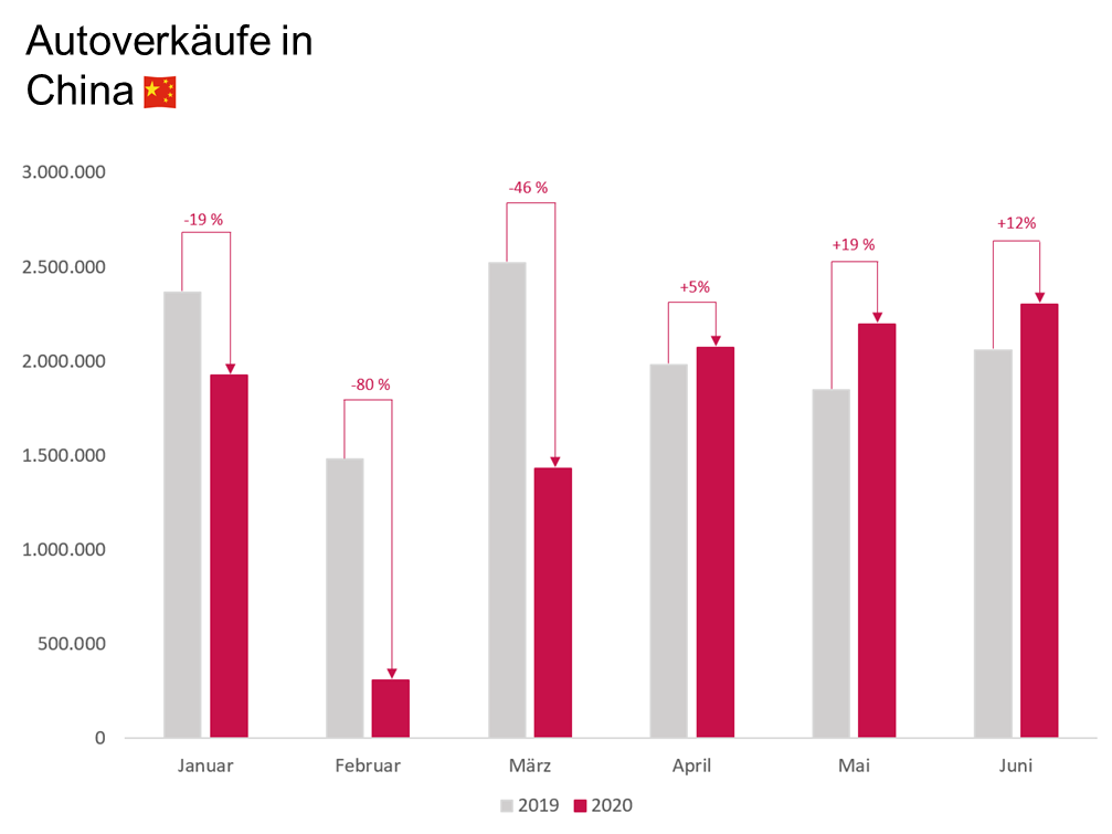 The China Association of Automobile Manufacturers (CAAM) estimates that, as a result of the coronavirus, car production in China in the year 2020 in total could be one million vehicles below the previous year and sales could drop by up to 15%. Nevertheless, confidence prevails that China will be able to make up for the slump caused by the COVID-19 pandemic and get back to its dynamic growth path that it had followed until 2017. Since the coronavirus crisis, even more Chinese people prefer to use their own car because of the increased risk of infection when using public transport. In addition, the expansion of electric bus and electric taxi fleets in the public sector in particular is considered an important driver of market recovery. The current figures confirm this upward trend. After motor vehicle sales (excluding electric cars) in China slumped by more than 40 percent in the first quarter of 2020, some growth has been recorded again since April.