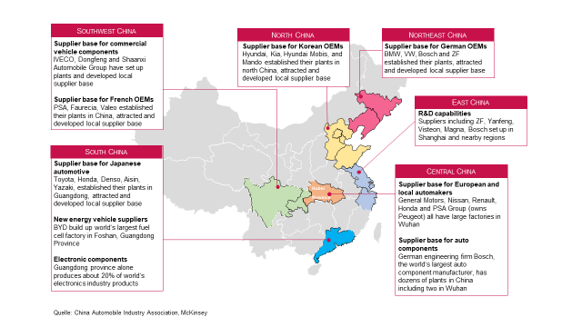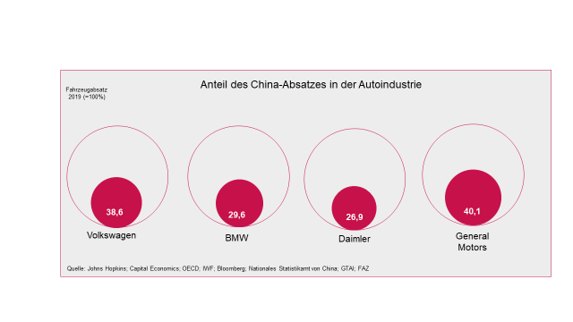 China is by far the most important sales market for German car manufacturers, who produced almost 5 million cars in China in 2019. VW delivers about 40% of the cars produced worldwide in China, other manufacturers have a similarly high share.