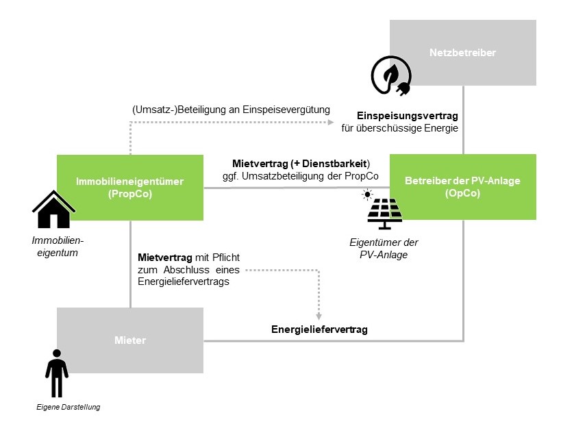 Aus unserer Sicht entstehen hierdurch jedoch nicht nur (finanzielle) Mehrbelastungen, sondern werden auch Potentiale zur Erweiterung von Geschäftsfeldern für (institutionelle) Immobilieninvestoren und Bestandshalter geschaffen: Gerade bei Neubauten in Quartieren kann z. B. in Erwägung gezogen werden, die errichteten Ladepunkte für E-Fahrzeuge sowie die PV-Anlagen auch benachbarten Eigentümern zugänglich zu machen (sog. Quartierslösung) und den mit der hauseigenen PV-Anlage erzeugten Strom für den Betrieb der Ladepunkte oder die Stromversorgung der Mieter (des gesamten Quartiers) einzuspeisen und auf diesem Wege über eine Stromkaufvereinbarung (Power Purchase Agreement) gewinnbringend zu verkaufen.